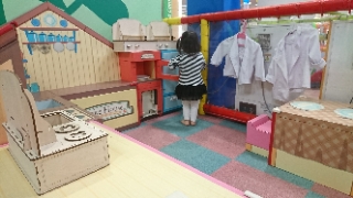 ままごと中。楽しそうでなにより。今晩は肉を食らいに行きますよー