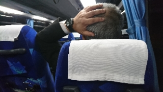 まさかの帰りもリクライニング事案(*_*)おどろくわ。ま、この度は隣が空いてますからそっちに。このリクライニング量てかここまでリクライニングするクルマ側(HINOと三菱)が悪い!?飛行機みたいにリクライニング幅を狭くすればいいぢゃん。